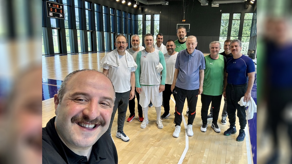 AKP'li Mustafa Varank, sosyal medya hesabından 'Maç sonrası özçekim' mesajı ile Cumhurbaşkanı Recep Tayyip Erdoğan ile basketbol oynadıkları fotoğraf paylaştı.