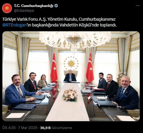 Türkiye Varlık Fonu A.Ş Yönetim Kurulu Toplantısı, Cumhurbaşkanı Erdoğan başkanlığında bugün saat 15:00'da yapıldı.