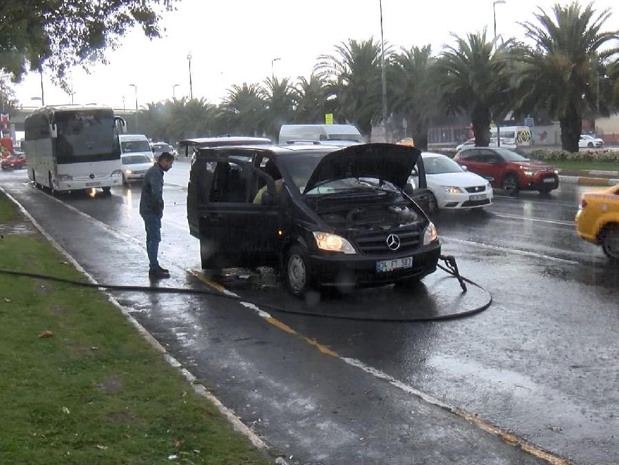 Fatih Vatan Caddesi Aksaray istikametine seyir halindeki Tevfik Demirkol yönetimindeki minibüsün, saat 09.00 sıralarında henüz bilinmeyen nedenle ön kabin kısmı yanmaya başladı. Alevlerin büyümesi üzerine, sürücü Demirkol aracını durdurarak, yangın tüpüyle yangına müdahale etti.