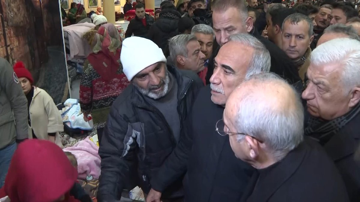 Kılıçdaroğlu, burada bir depremzede çocuğu kucağına aldı ve bir vatandaşın “Nasıl yapacağız” sorusuna, “Çözeceğiz, beraber çözeceğiz. Sadece ben gelmedim, büyükşehir belediye başkanlarımız da geldi buraya. İnşallah var olan bütün sorunları aşmak için çaba harcayacağız, mücadele edeceğiz” dedi.