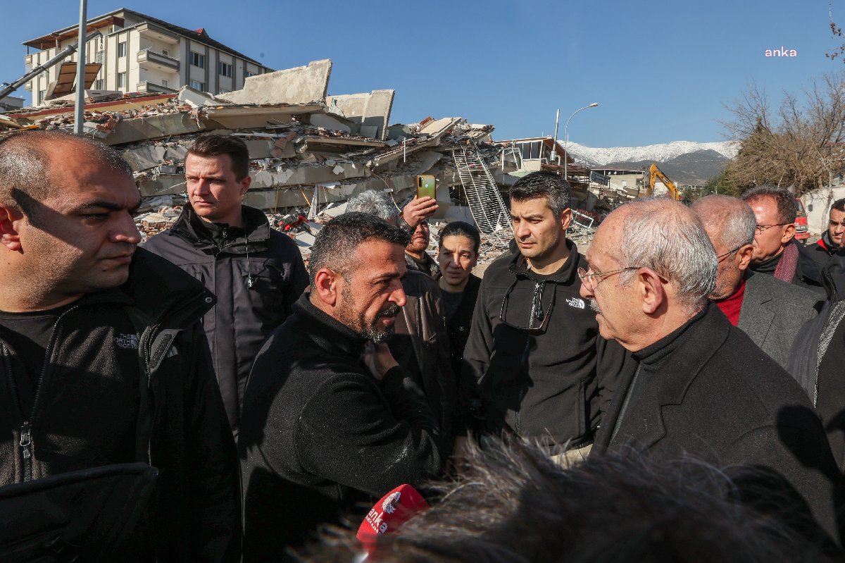 Bir vatandaş Kılıçdaroğlu'nun yanına gelerek, "Allah rızası için, kardeşim... Kardeşim... Dozer lazım bize, kepçe lazım, vinç lazım! Kardeşim 3 gündür enkazda Damla Apartmanı'nda. İki yeğenim var, iki kardeşim var, vinç lazım bize! Allah aşkına ne olur, vinç istiyoruz. Vinç olmadığı için yapamıyorlar Allah rızası için! Başınızdan savmayın ne olur" diyerek yardım istedi.