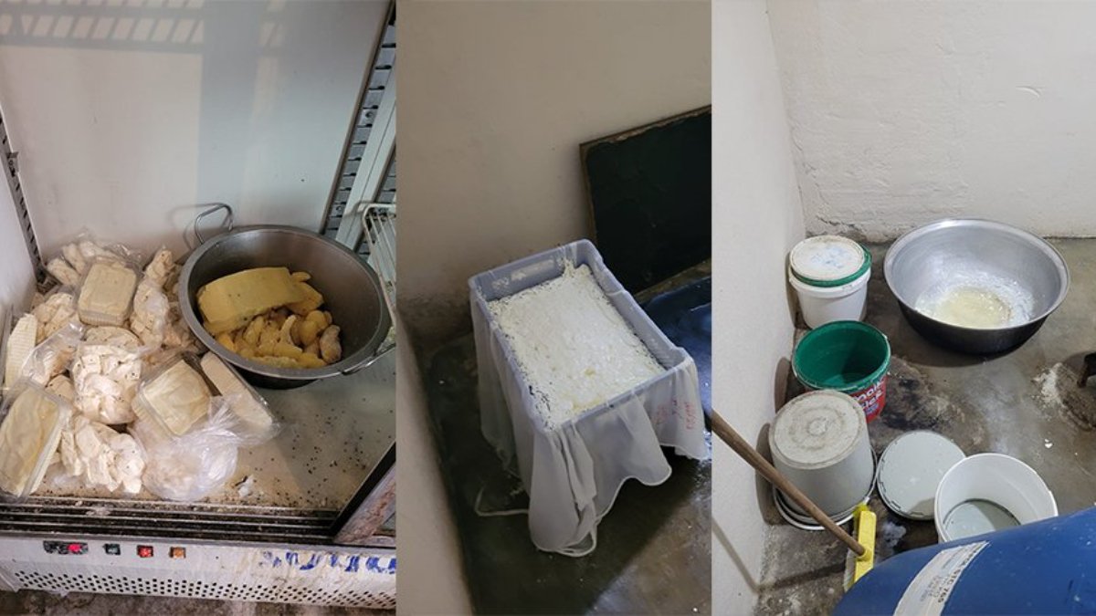 Yapılan incelemede, yapım aşamasında olan ve piyasa sürülmeye hazır, peynir ve kaymak bulundu. Hijyen kurallarına uyulmaksızın, sağlıksız koşullarda üretilen bazı ürünlerin ise yerlerde olduğu görüldü.