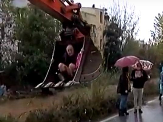 Vatandaşlar selden kepçeler yardımıyla kurtarılıyor