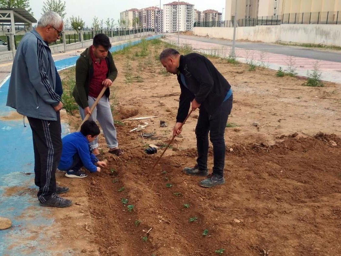 Site önünde yaklaşık 1 dönümlük yeşil alan olduğunu ancak şu an için vatandaşlara örnek olma adına küçük bir alanda ekim yaptıklarını belirten Karakaya, domates, biber, soğan, salatalık gibi sebze ekimi yaptıklarını söyledi. Bu şekilde en azından dışarıdan alma yerine kendi yetiştirdikleri ürünleri tüketeceklerini belirten Karakaya, “Türkiye tarım ülkesi, bizler üretmezsek olmaz. Her zaman üreteceğiz, konuşmayla peynir gemisi yürümez” diye konuştu.