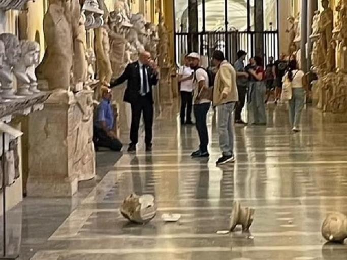 Vatikan'da Papa'yı göremeyen turist, 2000 yıllık heykelleri kırdı