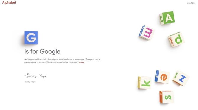 abc.xyz isimli adrese sahip olan Alphabet, en büyüğü Google olmak üzere birçok şirketi bir arada tutan devasa bir yapı olarak kullanıcılarının karşısına çıkacak.