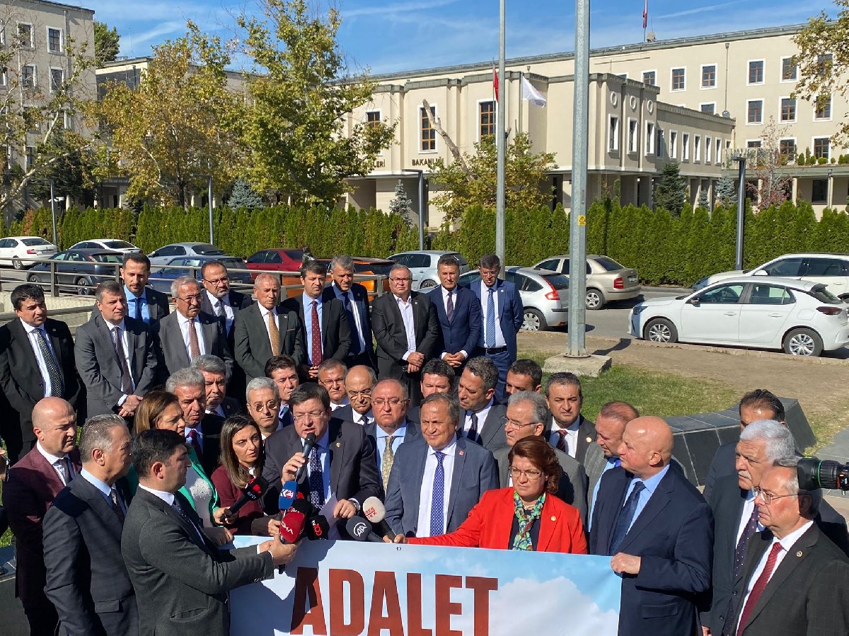 CHP Genel Başkan Yardımcıları Muharrem Erkek ve Seyit Torun ile Mersin Milletvekili Ali Mahir Başarır, İçişleri Bakanlığı önünde görevden alınan Yalova eski belediye Başkanı Vefa Salman için destek eylemi yaptı.