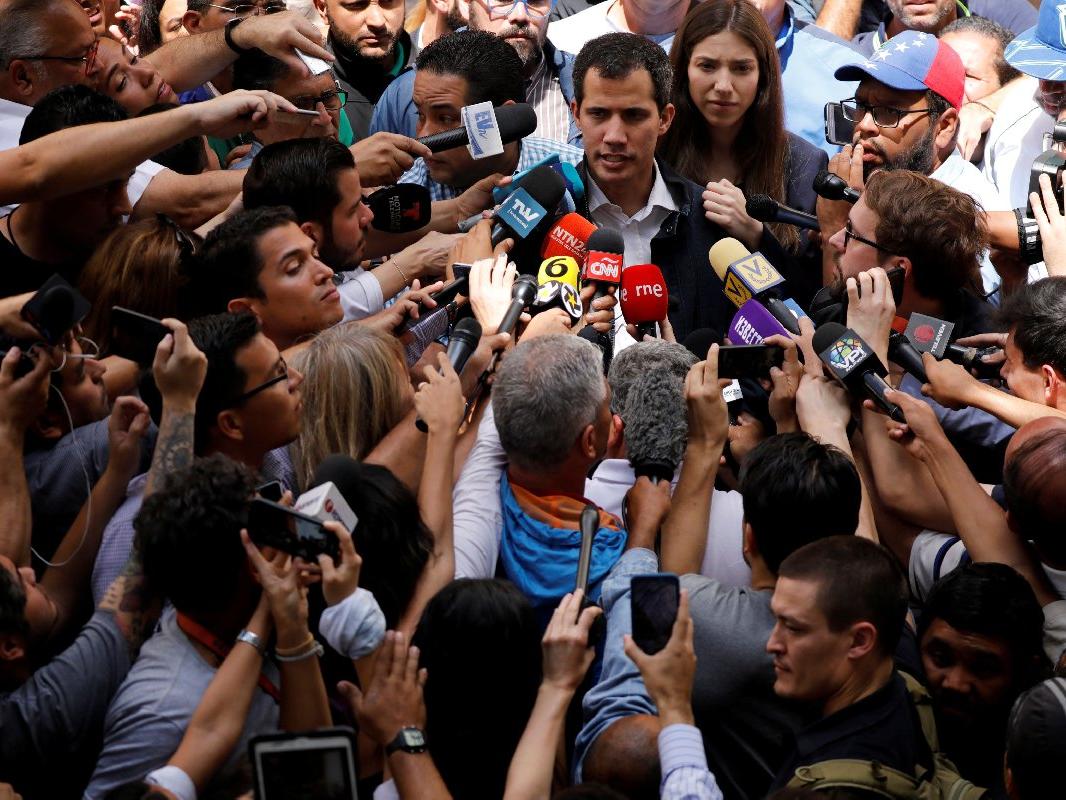 Guaido, "Barışçıl bir geçiş yapılabileceğine eminiz. Hem bir geçiş hem de özgür seçim" dedi. Guaido ayrıca ABD Başkanı Trump ile de konuştuğunu dile getirdi. Muhalif siyasetçi Venezuela'ya olası bir askeri müdahalenin gündemde olup olmadığına dair bir soruya da, "Bütün seçenekler masada" dedi.