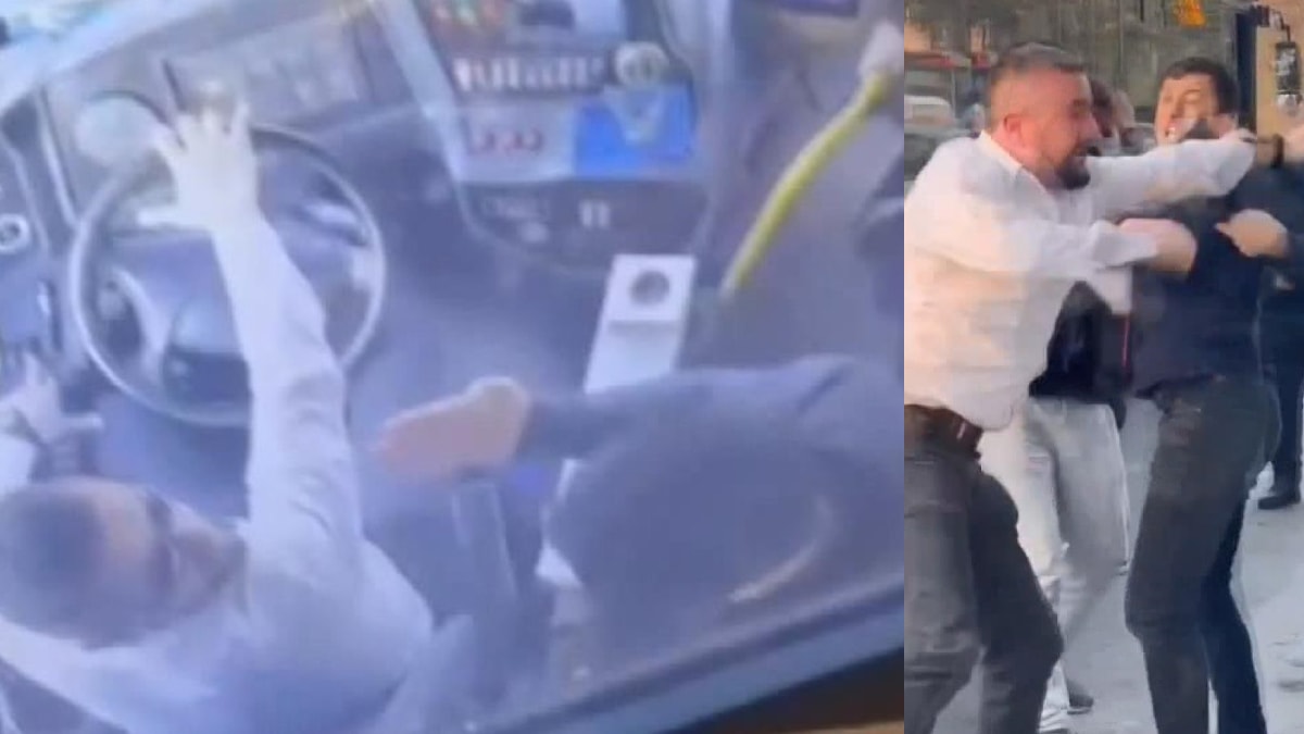 Tartışma sırasında polis olduğunu söyleyen kişi İETT şöförünü darbediyor. Ardından ikili otobüsünde dışında da da birbirine kavga ettiği görülüyor.