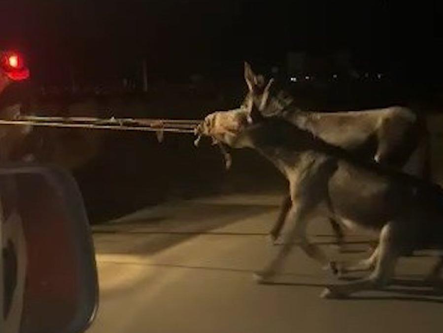 Edinilen bilgiye göre, Elazığ-Bingöl Karayolu Karasaz köyü mevkiinde cani bir sürücü, 23 ADB 896 plakalı traktörünün arkasına bağladığı iki eşeği sürükleyerek ilerledi.