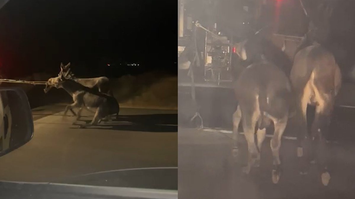 Bazı araç sürücülerinin tepki gösterdiği olayda, eşekleri traktörle bağlayarak sürükleyen vicdansız sürücü uyarılara kayıtsız kaldı.