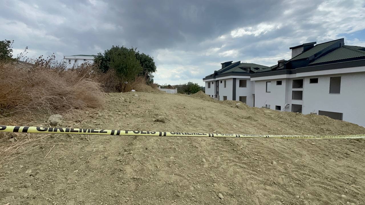 İnşaat alanında yapılan incelemelerde, istinat duvarıyla ayrılan bölümde toprağın yığılı ve zeminin yüksek olduğu kısma polis köpeğinin tepki vermesi üzerine kazı çalışması başlatıldı.