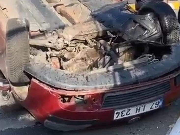 Sarıyer'de virajı alamayınca direksiyon hakimiyetini kaybeden otomobil sürücüsü, takla atarak karşıdan gelen hafif ticari araca çarptı.