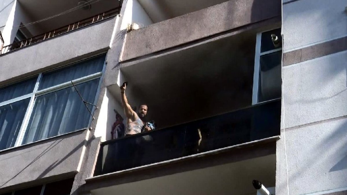 Komşuları ne olduğunu anlamaya çalışırken, evden dumanlar yükseldiğini gördüler. İhbar üzerine mahalleye itfaiye ve sağlık ekipleri sevk edildi. Ekipler, kapısı kilitli olduğu için eve giremedi. Evdeki eşyaları ateşe verdiği iddia edilen vücut geliştirme şampiyonu Onur Genç, kucağındaki köpeğiyle balkonda mahsur kaldı.