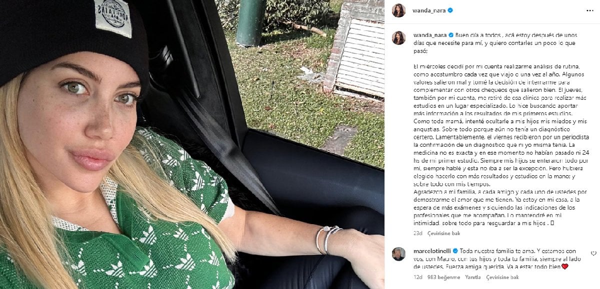 Wanda Nara'nın lösemi iddiasıyla ilgili yaptığı paylaşım.Wanda Nara'dan sağlık durumu hakkında açıklama ve 'lösemi' iddiasına yanıt