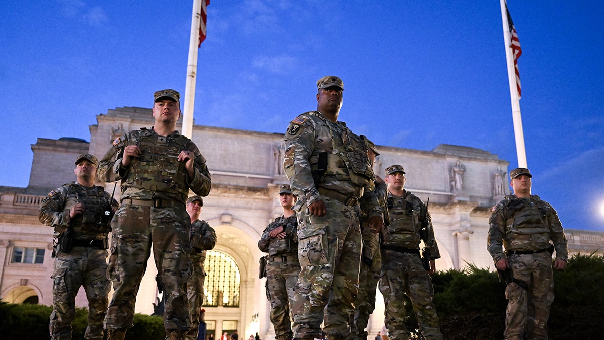 ABD'de başkent Washington, D.C.’de artırılan güvenlik önlemleri kapsamında Ulusal Muhafız birlikleri Union Station çevresinde devriye gezdi.