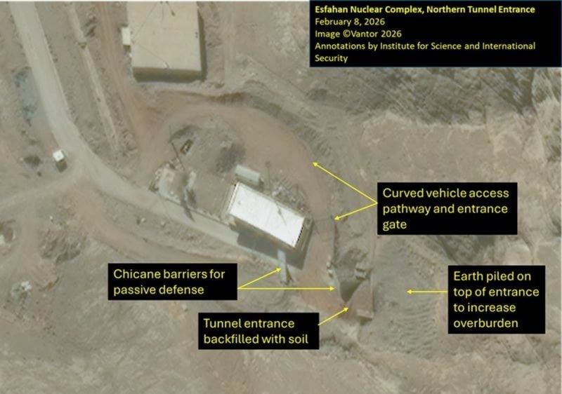Bilim ve Uluslararası Güvenlik Enstitüsü'nün uydu fotoğrafları üzerinden saptadığı çalışmalar, İran'ın yer altı tesislerine inen girişleri toprakla kapadığını gösterdi.