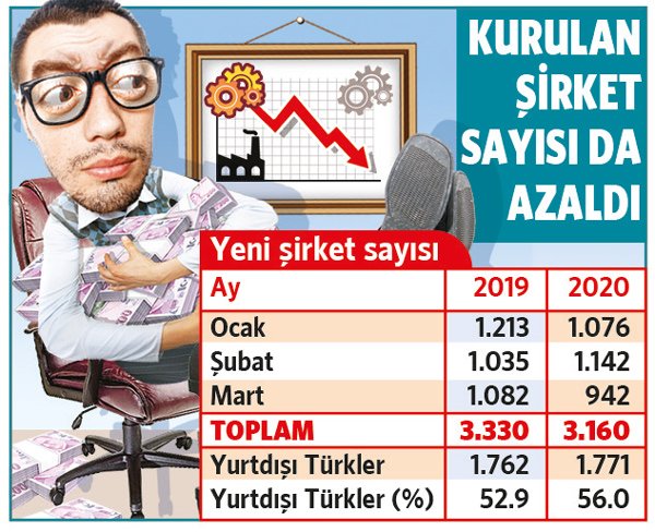 Türkiye Ekonomi Politikaları Araştırma Vakfı’nın (TEPAV) çalışmasına göre, virüsün etkilerinin ilk görüldüğü mart ayında Türkiye’de kurulan yabancı ortak sermayeli şirket sayısı bu yılın ocak ayına göre yüzde 12.5, şubat ayına göre ise yüzde 17.5 oranında düşerek 942 şirkete geriledi. Yeni kurulan şirket ortaklarının büyük bölümü İran, Irak, Suriye gibi komşu ülke vatandaşlarından oluşuyor.