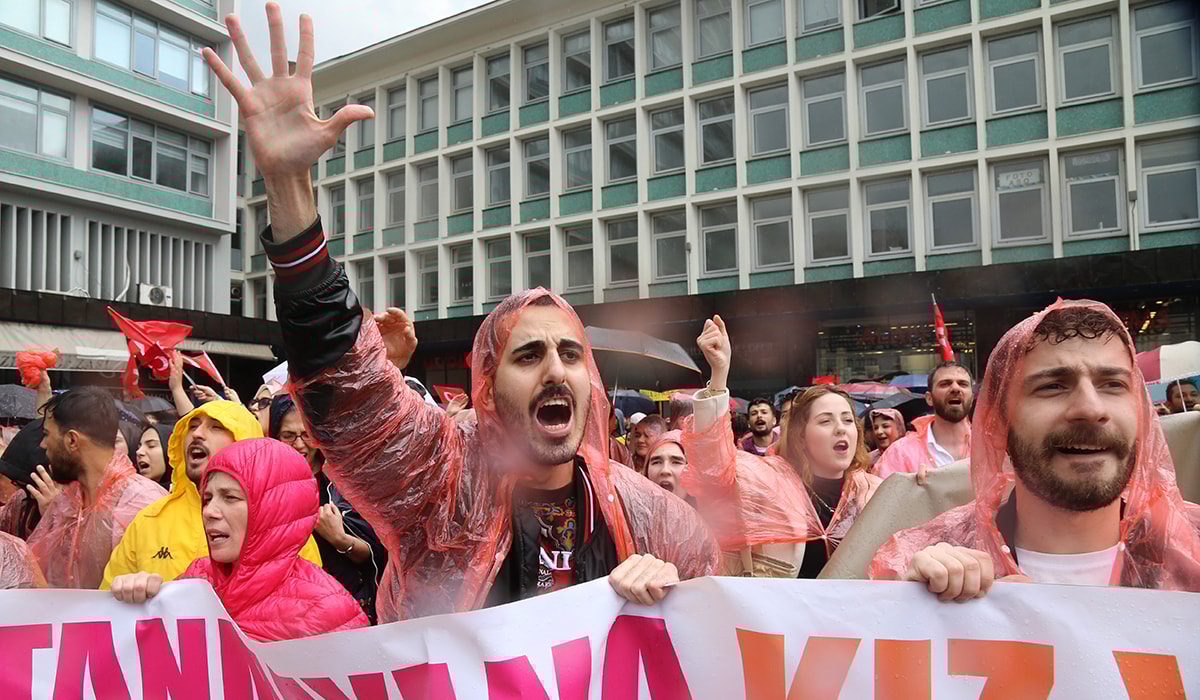 “Türkiye’nin dört bir yanında gelen binlerce öğretmenin sesine ses olmak, onlara destek vermek için buradayız. Biraz önce burada büyük bir dolu fırtınası oldu. Tek bir öğretmenimiz bile bu fırtınadan kaçmadılar.