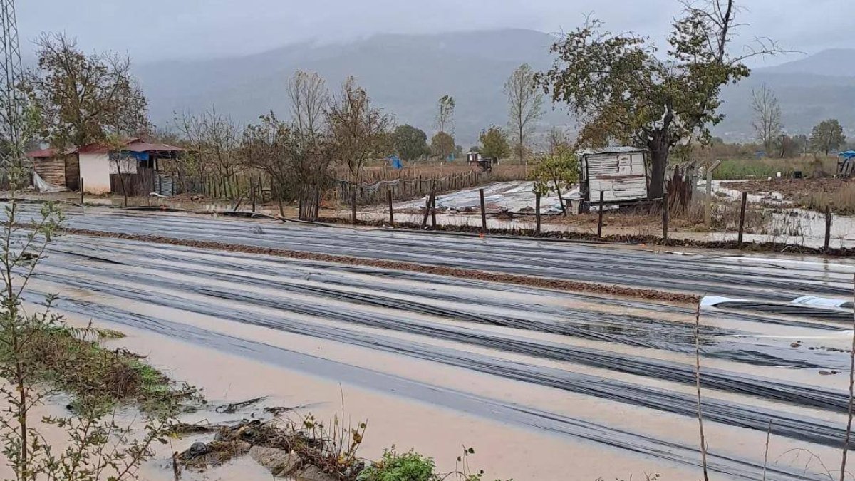 Çilek bahçelerinin su altında kaldığı beldede, yağışın yol açtığı olumsuzlukların giderilmesi için belediye tarafından çalışma başlatıldı.