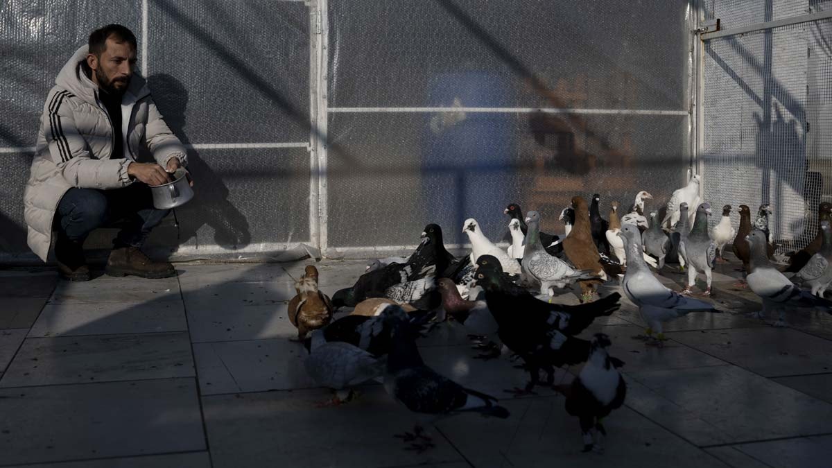 Evinin terasında hayvanlarına bakmaya devam eden Karpuz, farklı cinslerdeki 150 kadar güvercinini evladından farksız gördüğünü dile getiriyor.