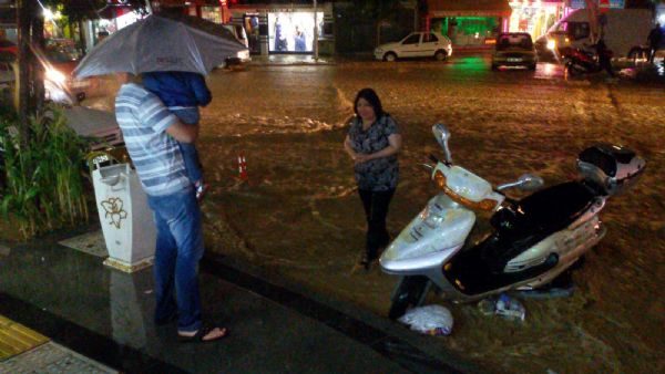Sağanak yağış nedeniyle vatandaşlar iş yerlerine sığınarak yağmurdan korundular