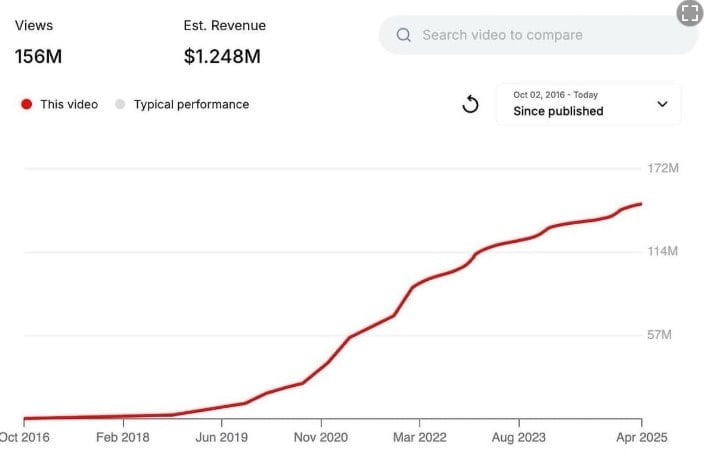Bu basit görüntünün yarattığı ekonomik hacim ise dudak uçuklatıyor. Sosyal medya analizlerine ve sektör tahminlerine göre, videonun bugüne kadar elde ettiği reklam geliri 1,24 milyon doları (yaklaşık 42 milyon TL) bulmuş olabilir. Daha temkinli yaklaşımlar bile kazancın 500 bin ile 800 bin dolar bandında olduğunu öngörüyor. Tek bir sabit kamerayla çekilen ve yüklendiği günden bu yana hiçbir güncelleme almayan video, "pasif gelir" modelinin dijital dünyadaki en somut örneği olarak gösteriliyor.