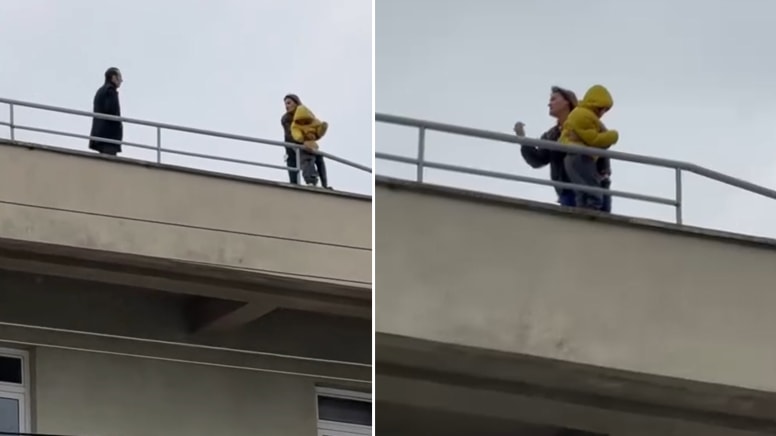 B.S.S., çocuğuyla birlikte sağlık ekiplerine teslim edildi. O anlar, çevredekilerin cep telefonu kamerasıyla kaydedildi.