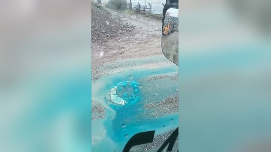 Yalova'nın Çiftlikköy ilçesine bağlı Taşköprü beldesinde, sanayi kuruluşuna yakın bir bölgede rögardan mavi renkli suyun taşması vatandaşlar tarafından görüntülendi.
