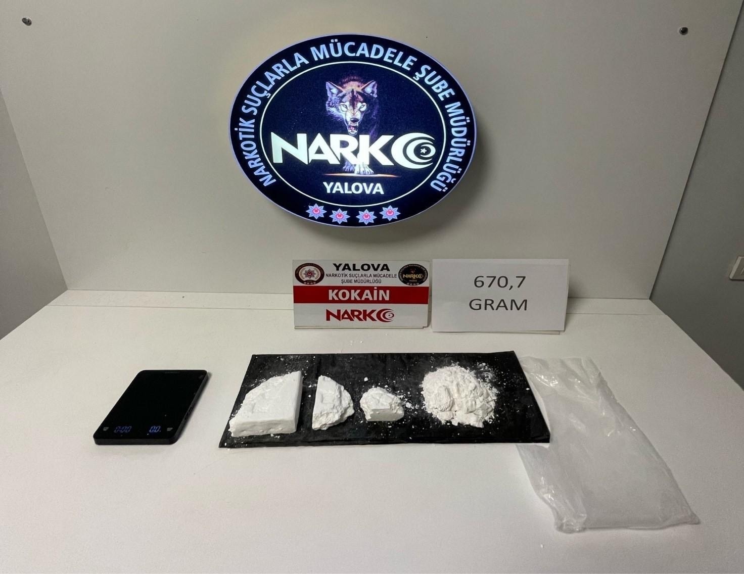 Ekiplerin gerçekleştirdiği aramalarda, 670,07 gram kokain, 598,20 gram sentetik kannabinoid, 1 şişe sıvı kimyasal madde ve 1 adet hassas terazi ele geçirildi.