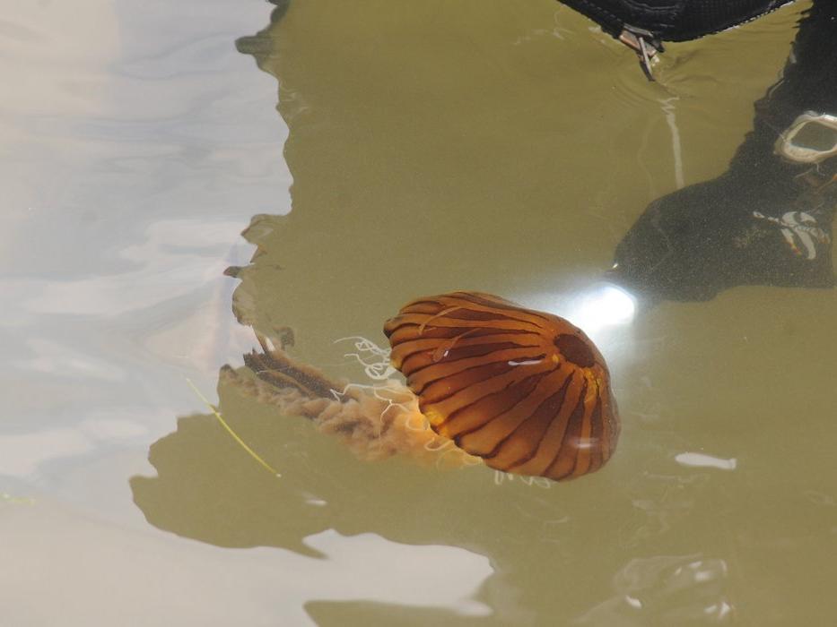 Yalova’da gerçekleştirilen çevre etkinliği çerçevesinde dalış gerçekleştiren dalgıçlar Yürüyen Köşk sahilinde tespit ettikleri pusula denizanasını inceledi.