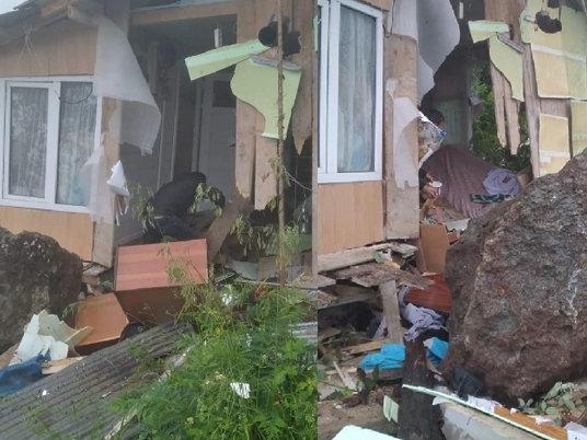 Olay anında barakanın içinde kimsenin olmaması büyük bir faciayı önlerken, kayanın çarptığı baraka ise kullanılamaz hale geldi. Yuvarlandıkça parçalara ayrılan dev kayanın parçaları ise barakanın alt kısmında bulunan yola kadar yuvarlandı. (İHA)