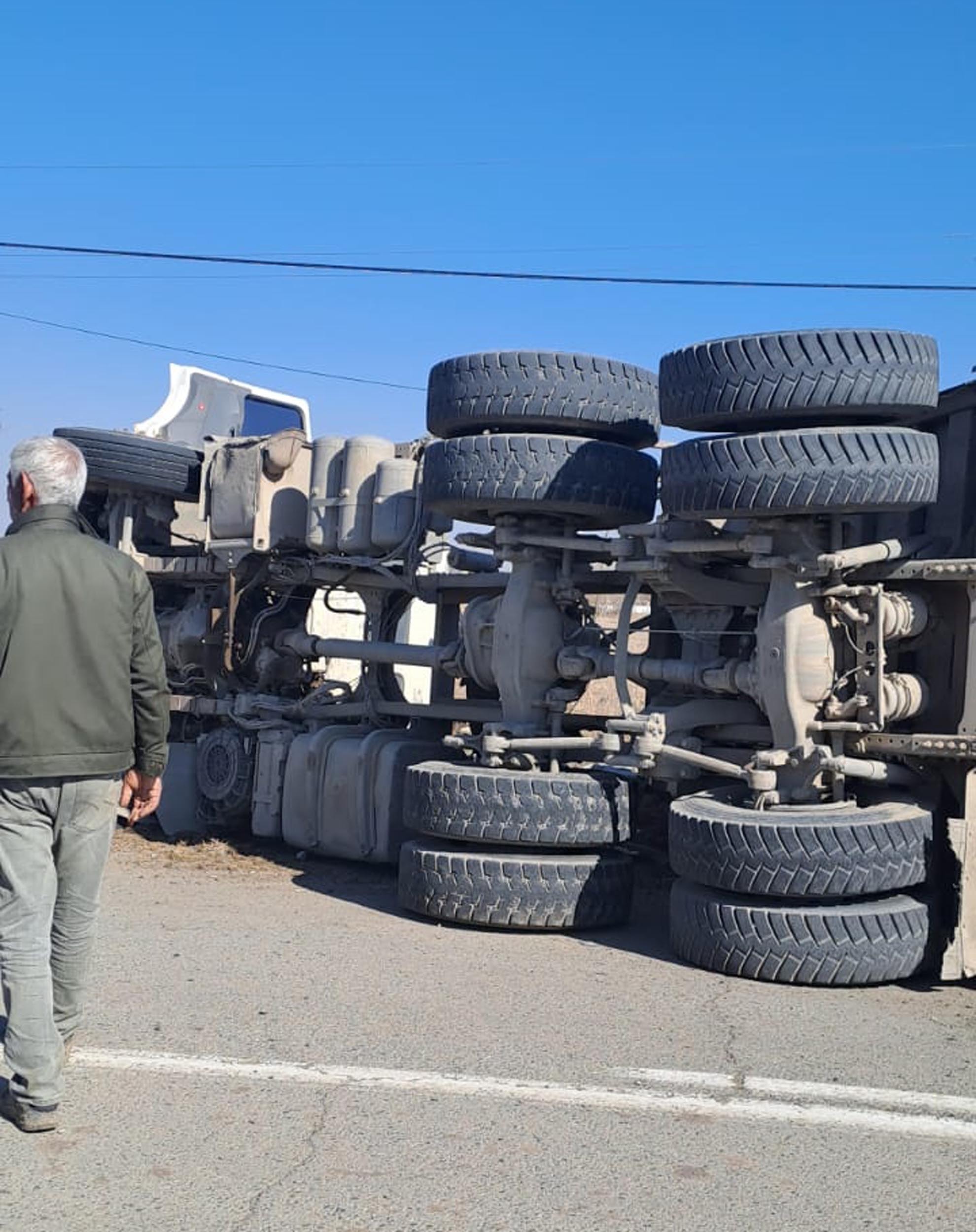 Iğdır'ın Karakoyunlu ilçesi Gökceli-Bayat köyü kavşağında meydana gelen kazada, virajı alamayan kamyon devrildi. Olay, Ekrem Akkuş’un kullandığı Iğdır İl Özel İdaresi’ne ait kum yüklü kamyonun virajı alamayıp yan yatması sonucu gerçekleşti.