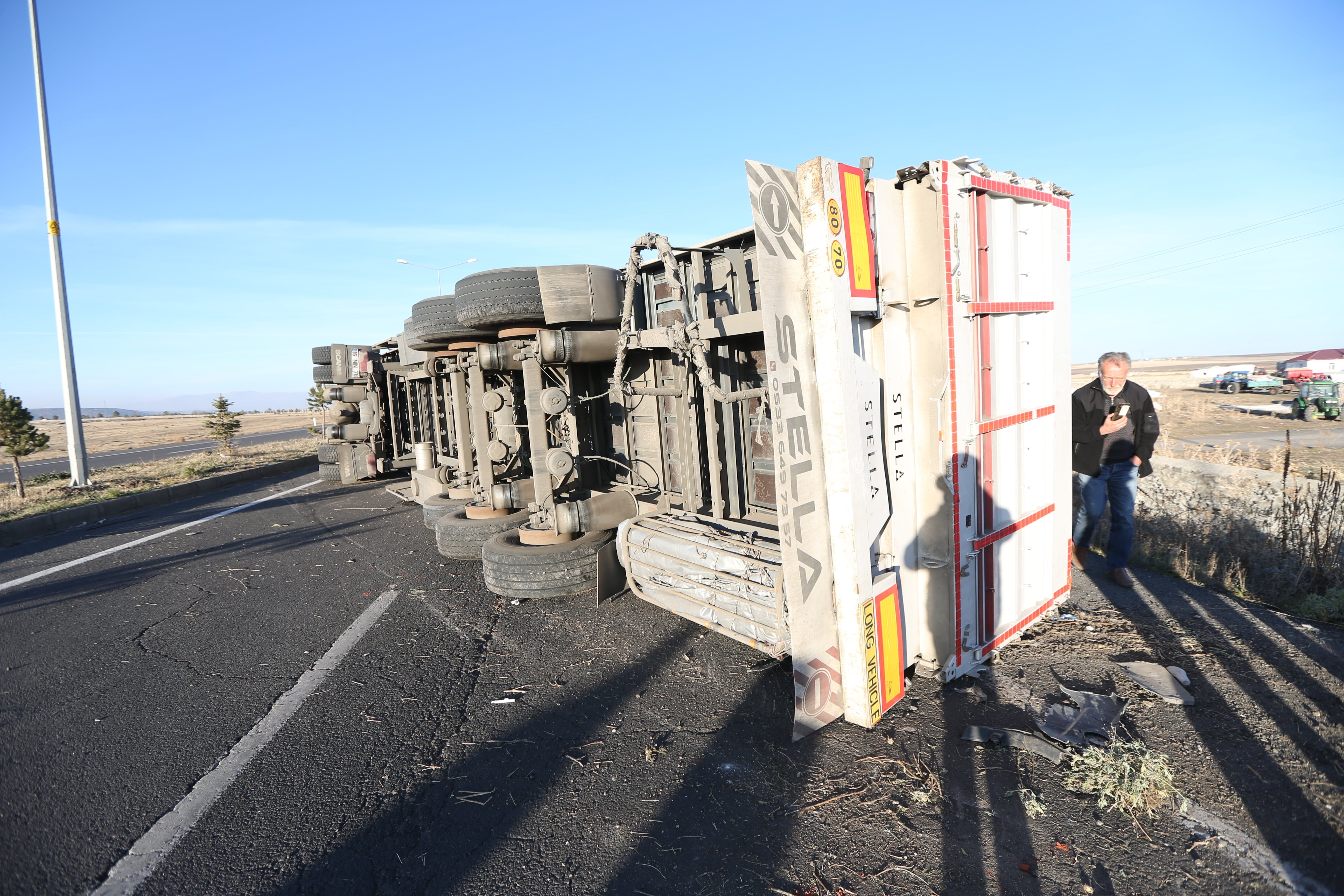 Abdullah Ç. (22) idaresindeki 16 NIN 78 plakalı yem yüklü tır, Kars-Ardahan kara yolu Asri Mezarlık mevkisinde devrildi.
