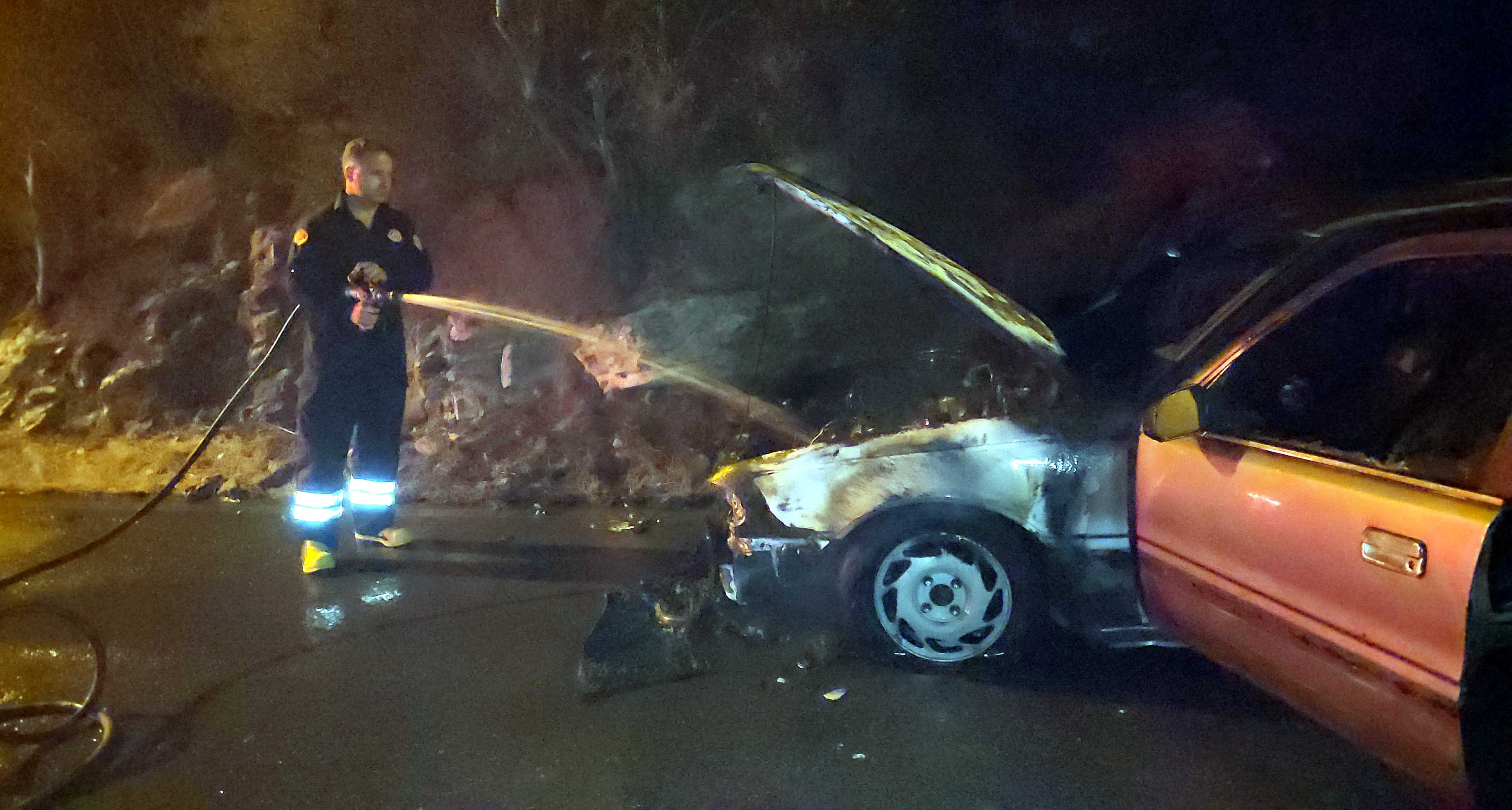Dolu’nun ihbarı üzerine olay yerine gelen itfaiye ekipleri yangını söndürdü. Araba küle döndü.