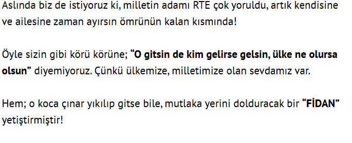 "Aslında biz de istiyoruz ki, milletin adamı RTE çok yoruldu, artık kendisine ve ailesine zaman ayırsın ömrünün kalan kısmında!