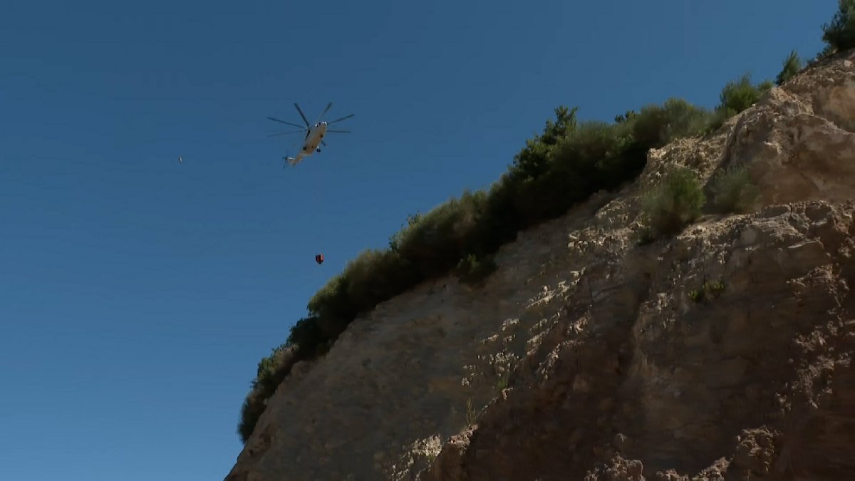 Kuruyan göletten su alamayan yangın söndürme helikopterleri yangına müdahale etmek için kilometrelerce ötedeki denizden su alarak yangına müdahale etmeye çalışıyor. Yangın göletinin yönetmeliğe uygun yapılmadığı için su tutmadığı iddia ediliyor.