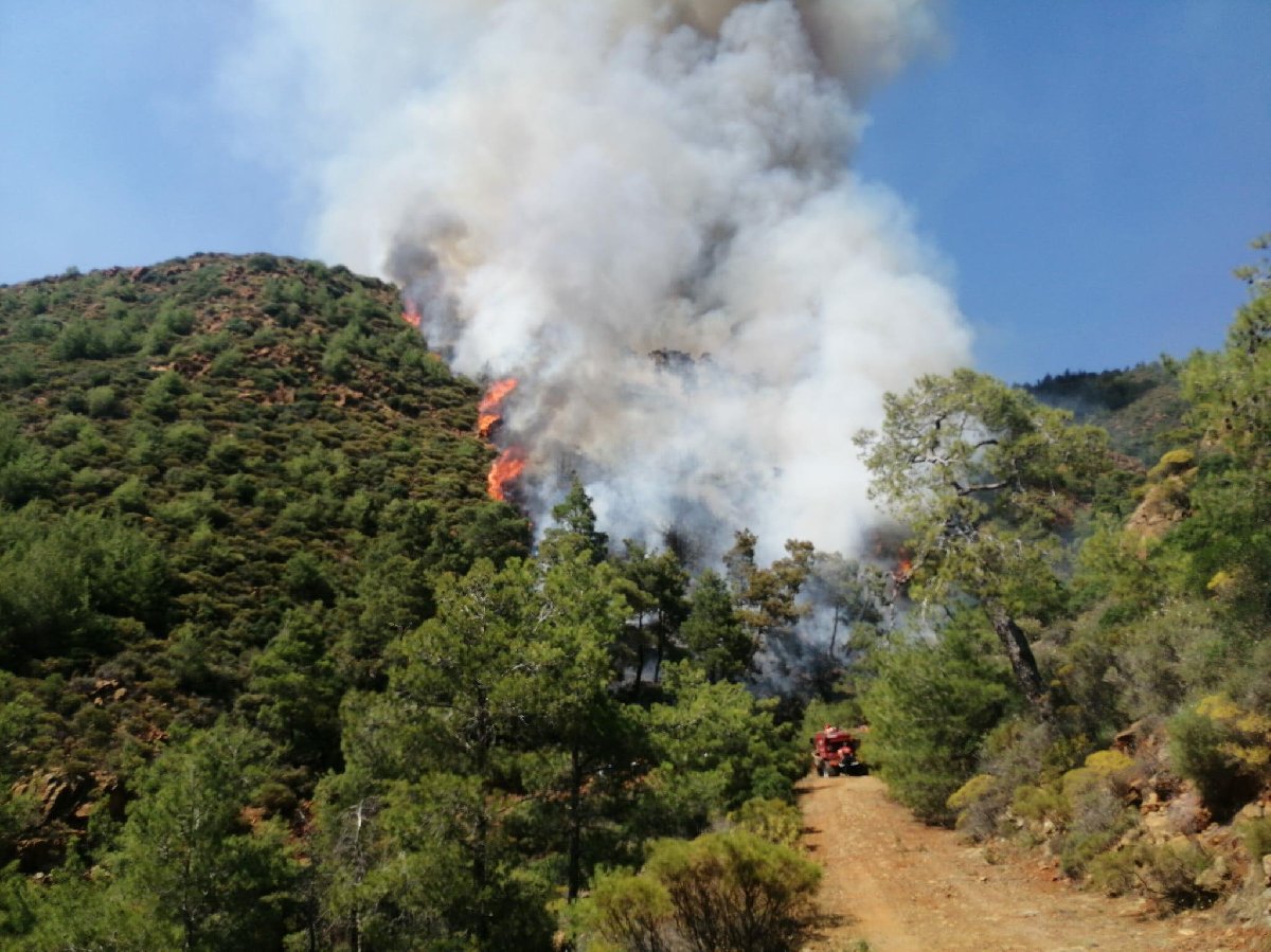 Muğla Büyükşehir Belediyesi İtfaiye Daire Başkanlığı ekiplerinin destek verdiği söndürme çalışmalarıyla 3 saatte kontrol altına alınan yangında 5 hektar orman zarar gördü.