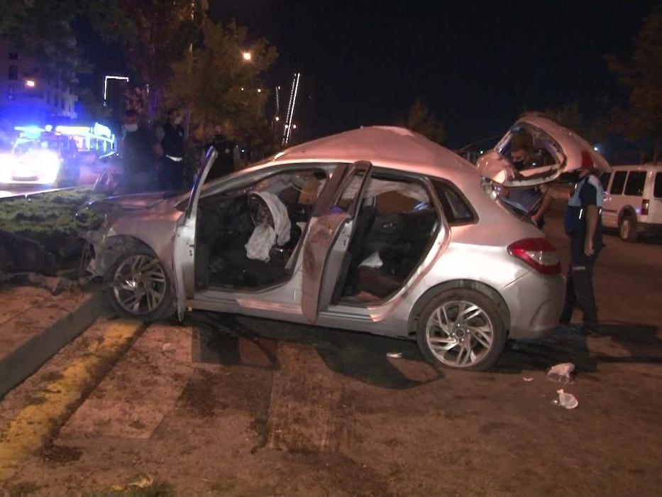 Ankara Mamak'ta sürücüsünün kontrolünü kaybettiği araç refüje çarparak hurdaya döndü. Araçta bulunan 5 arkadaştan 3’ü ağır yaralanırken, alkollü olduğu iddia edilen sürücüsü ile bir arkadaşı olay yerinden kaçtı.