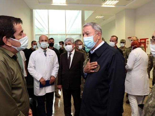 Sağlık durumlarına ilişkin yetkililerden bilgi alan Bakan Akar, askerlerle ve yakınlarıyla da görüştü.