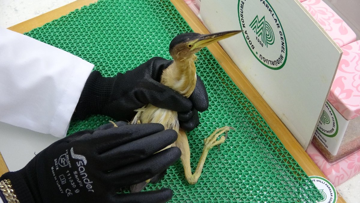 Sağlığına kavuşan balaban kuşu, kısa bir süre sonra doğaya salınacak. (DHA)