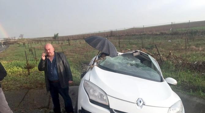 Kaza, Çorlu TEM yolu Vakıflar gişeler mevkiinde meydana geldi. İstanbul yönüne giden Erkan Ergün, yağmur nedeniyle kayganlaşan yolda, yönetimindeki 39 EE 317 plakalı otomobilin direksiyon kontrolünü yitirdi. Yoldan çıkıp takla atan otomobilin sürücüsü Ergun kendi imkanları ile çıkarken, yanındaki Ayşe Atlı otomobilde sıkışıp yaralandı. Kazayı görenler hemen yardıma koşarken, araçta sıkışan Ayşe Atlı'nın yağmurdan korunması için üzerini şemsiye tutarak, sağlık ve itfaiye ekiplerinin gelmesi beklendi. Bir süre sonra gelen ekipler, Atlı'yı araçtan çıkardı. İlk müdahalesi kaza yerinde yapılan Atlı, ambulansla götürüldüğü Çorlu Devlet Hastanesi'nde tedavi altına alındı.