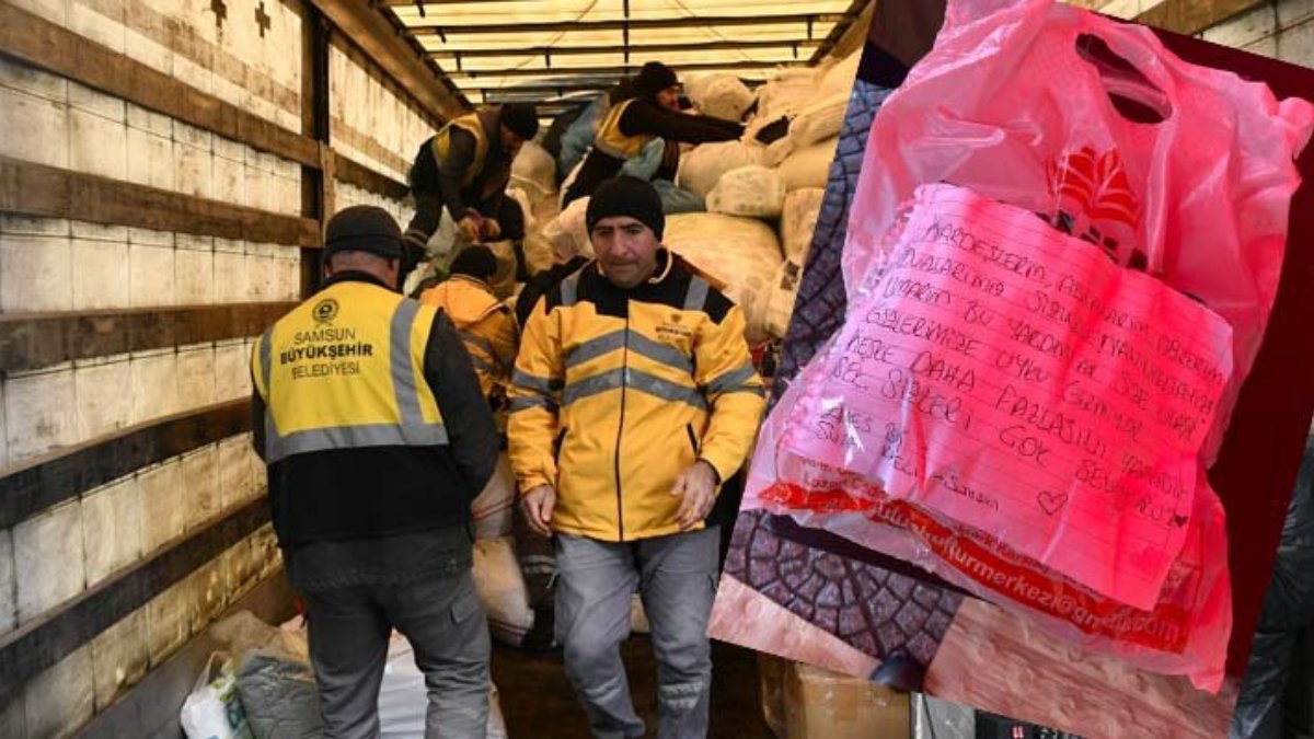 Toplanan yardımların depolarda ayrıştırıldığı sırada görevlilerin fark ettiği bir not ise görenleri duygulandırdı. Lise öğrencisi iki arkadaşın getirdiği koliden çıkan notta “Kardeşlerim, ablalarım, abilerim. Dualarımız sizinle. Yanınızdayız. Umarım bu yardımlar size ulaşır. Gözlerimize uyku girmiyor. Keşke daha fazlasını yapabilsek. Sizleri çok seviyoruz" ifadeleri yer aldı.