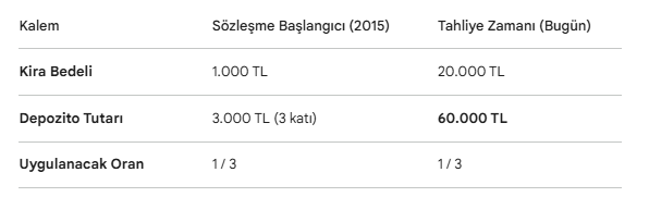 2012 Sonrası Sözleşmeler: Eğer sözleşmede "2 kira bedeli" gibi genel bir ifade varsa güncel bedel üzerinden iade yapılır. Ancak "Depozito aynen (rakam olarak) iade edilir" şeklinde kısıtlayıcı bir madde varsa güncelleme yapılamayabiliyor.