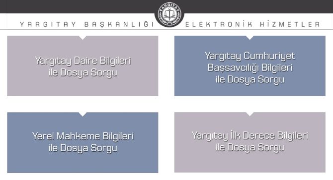 Esgm sitesindeki Yargıtay dosya sorgulama yazısında belirtildiği gibi kişiler Yargıtay dosyaları için resimde görülen dosya sorgulama bölümünü kullanmalıdır. Bu bölümün tıklanmasının ardından sistemde 4 farklı seçenek daha görülür. Bu bölüm ise şöyledir: