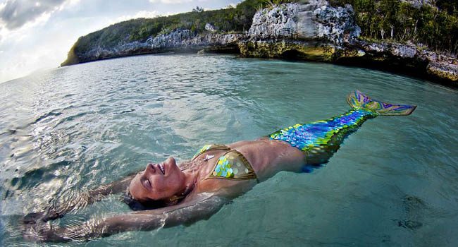Yüzerken 10 bin Sterlin değerindeki denizkuyruğunu kullanan Wolbert, 'profesyonel deniz kızı' unvanıyla dünyayı geziyor.