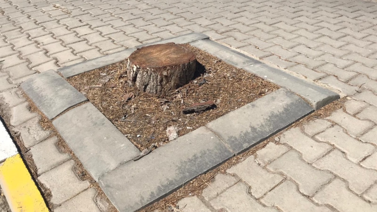 Cadde üzerinde yürütülen proje çalışması kapsamında kaldırım kenarına denk gelen 40-50 yıllık çam ağaçları gece saatlerinde sessiz sedasız kesildi.