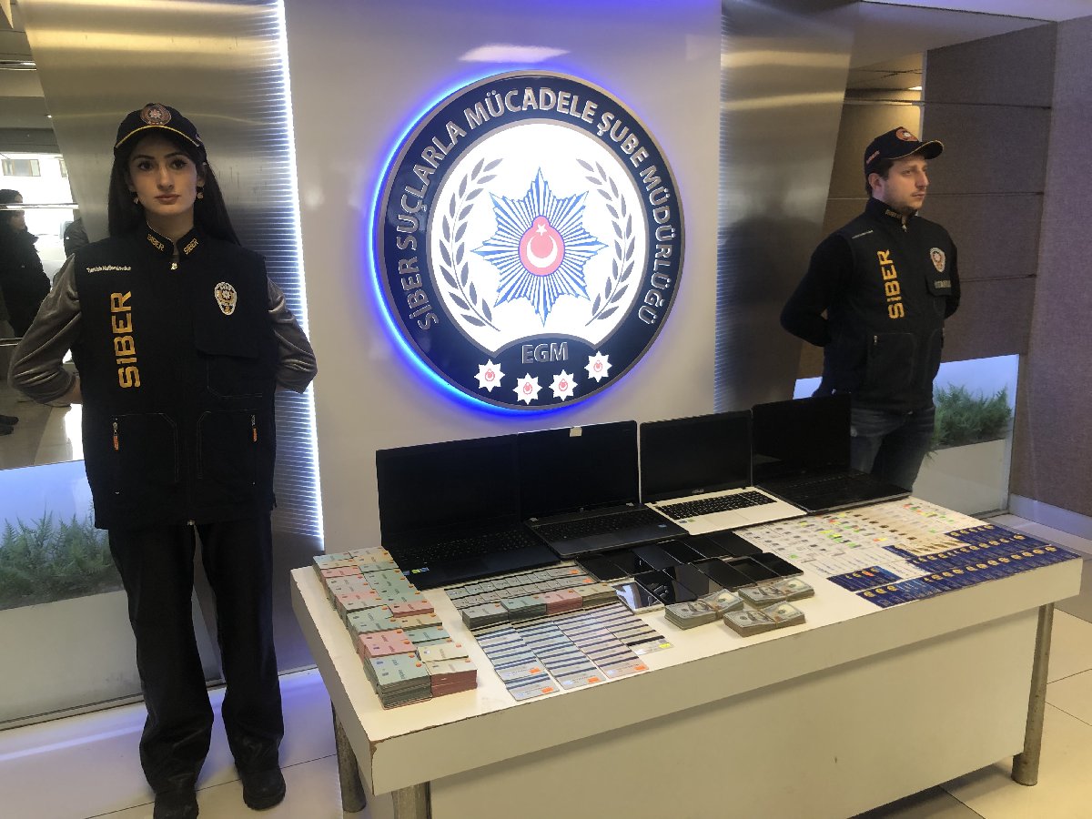 Şüphelilerin adreslerinde yapılan aramalarda, suçtan elde edildiği değerlendirilen 30 bin 100 dolar ile 68 cep telefonu, 249 sim kart, 19 dizüstü bilgisayar, 6 tablet ve 23 dijital bellek kartına el konuldu. Aramalarda ayrıca 2 bin 815 banka kartına da el konuldu.