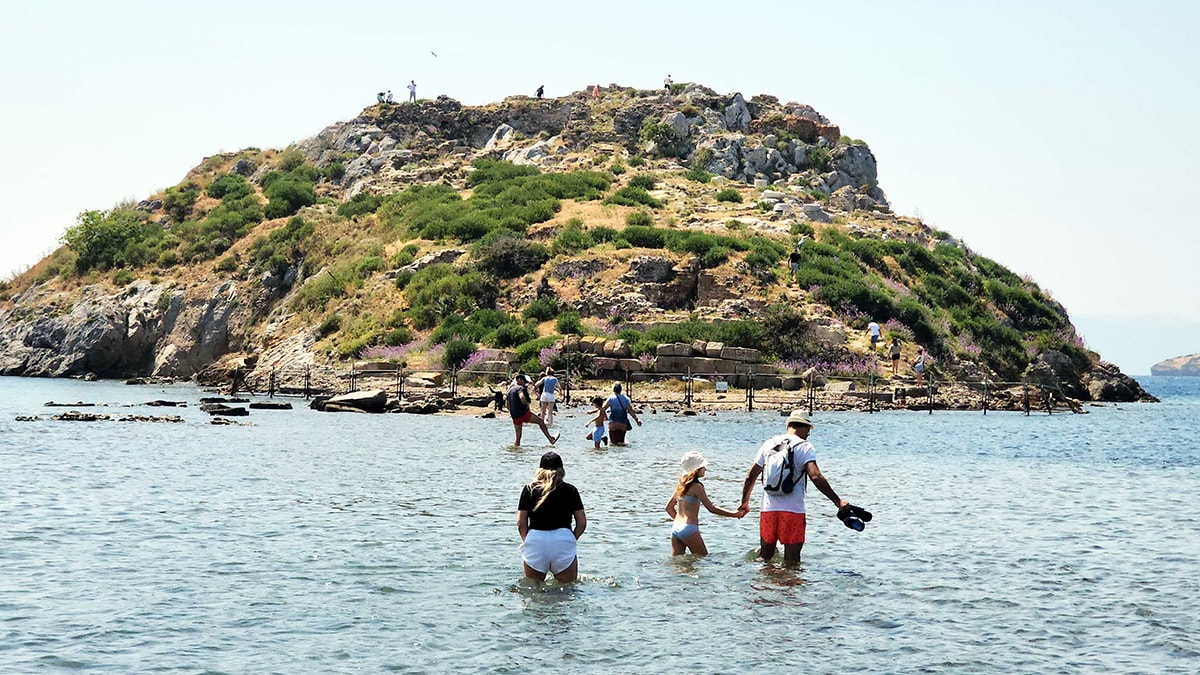 Muğla'nın Bodrum ilçesinde Antik Myndos Kenti harabeleri üzerinde kurulan 3500 yıllık antik kent kalıntılarının bulunduğu Tavşan Adası bayram tatilinde yerli ve yabancı turistlerin akınına uğradı.