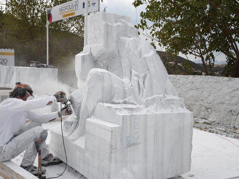Sanatçılar bu alanda bir ay boyunca Marmara Adalar Belediyesi’nden temin edilen mermer bloklar üzerinde çalıştı. Vatandaşların çalışmaları yerinde izlemeleri için Kuşadası Belediyesi’nin ücretsiz servisleri hizmet verdi.